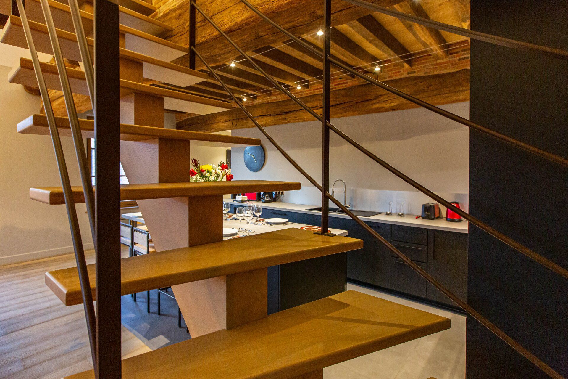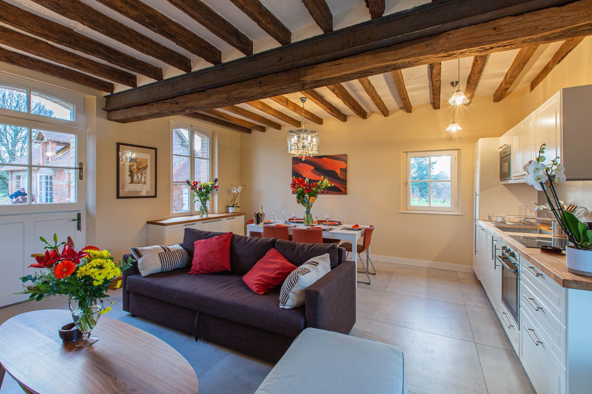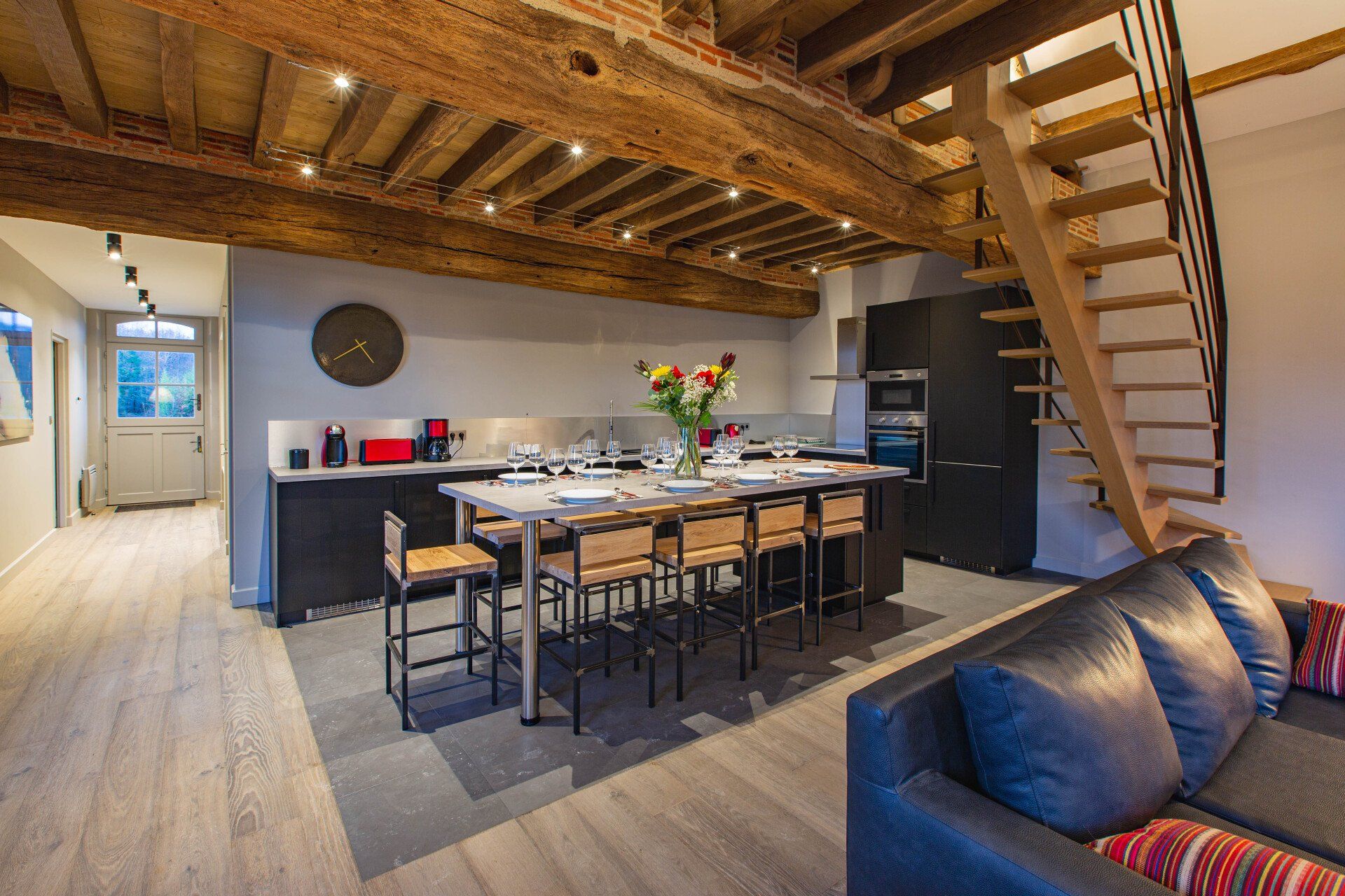 Il soggiorno, con il suo soppalco, il soffitto a cattedrale e le travi a vista, ha un fascino accattivante. Un grande camino, una TV a schermo piatto, l'accesso WiFi e un magnifico tavolo da pranzo (per 18 ospiti) completano questo ambiente idilliaco.
