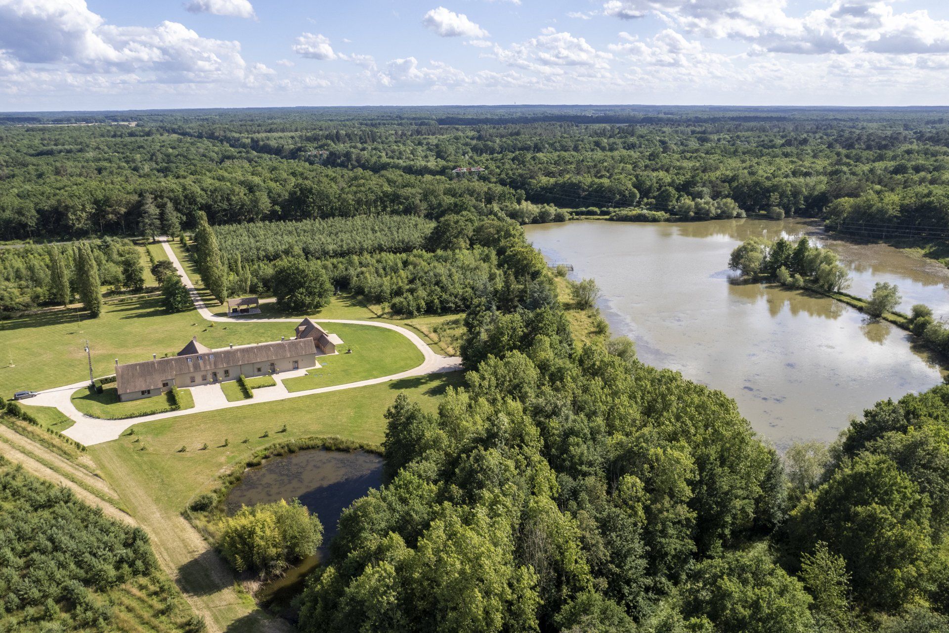 Nascosto tra i boschi e i vasti stagni che circondano Château Le Chereau, Domaine Les Poultières vi aspetta per una fuga rigenerante nel cuore di una campagna preservata da qualsiasi inquinamento acustico. Dotata di 12 posti auto, la nostra tenuta offre 340 m² di comfort assoluto, tra cui 9 camere da letto (e due divani letto), 7 bagni e può ospitare da 22 a 24 persone. Quasi ogni camera è dotata di un proprio bagno con cabina doccia per un comfort ottimale.