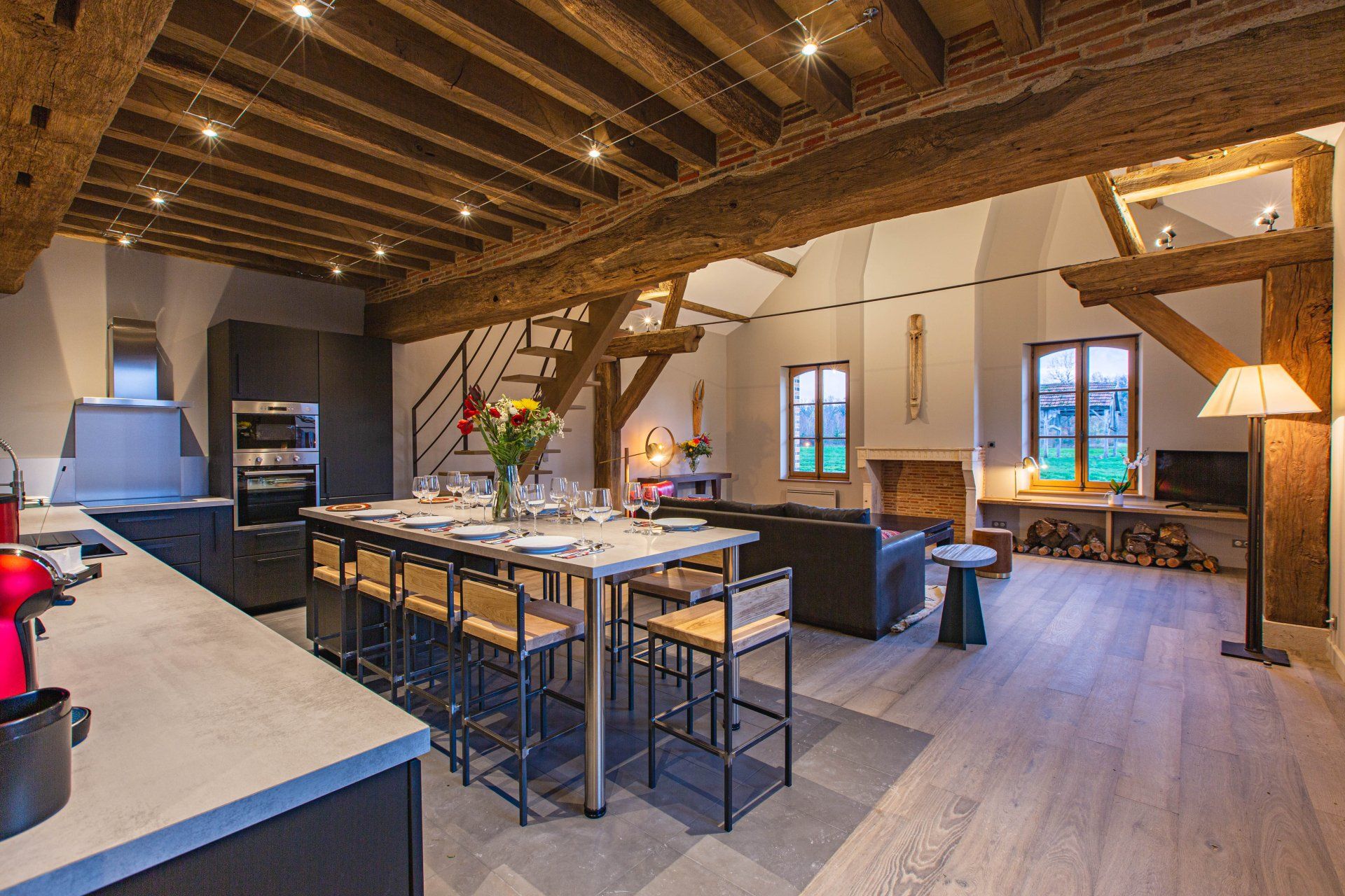 Il soggiorno, con il suo soppalco, il soffitto a cattedrale e le travi a vista, ha un fascino accattivante. Un grande camino, una TV a schermo piatto, l'accesso WiFi e un magnifico tavolo da pranzo (per 18 ospiti) completano questo ambiente idilliaco.